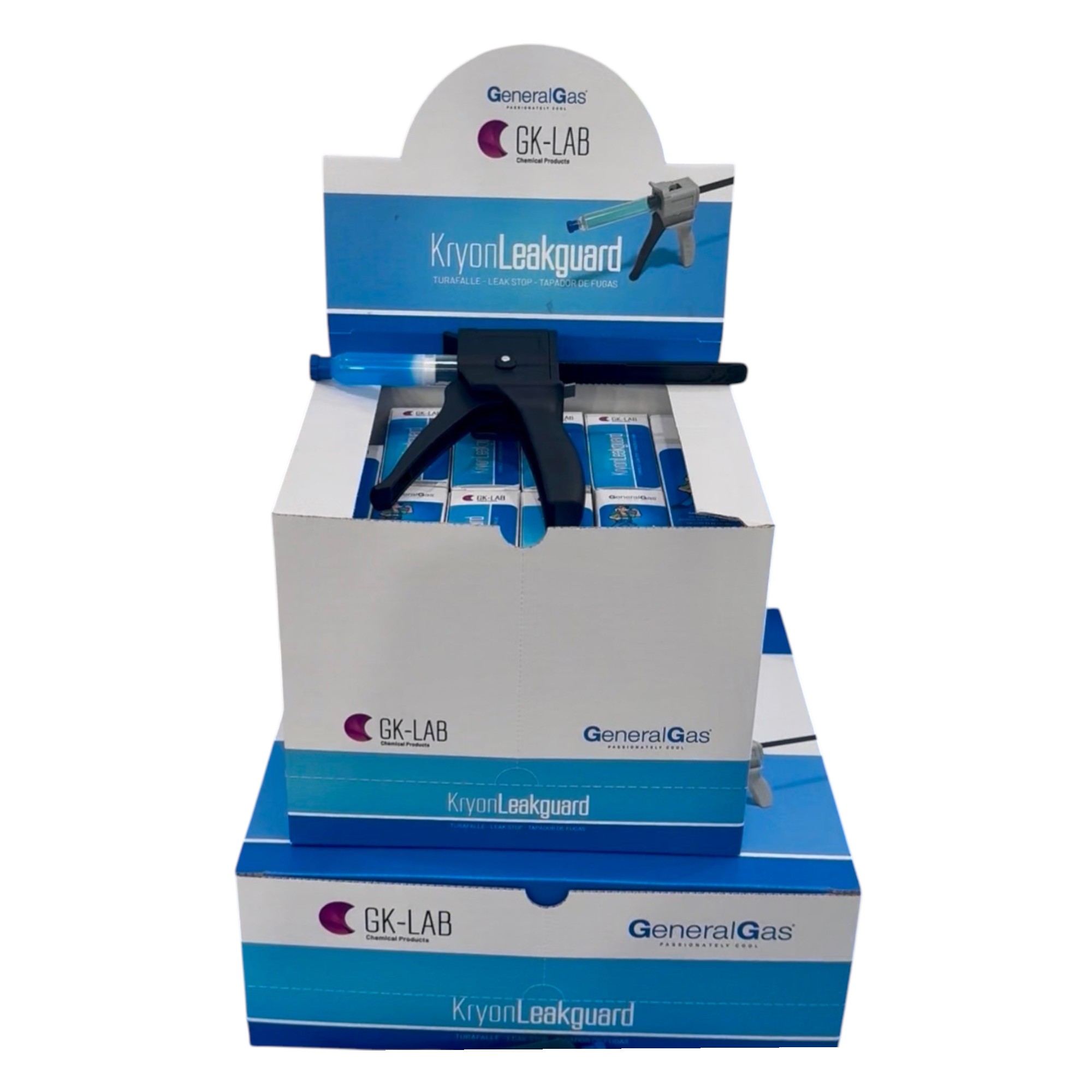 GK-Lab KryonLeakGuard Anti-fuite pour la Réparation de Micro-fuites dans les Systèmes HVACR et AUTO - 24 cartouches de 48 ml dans un présentoir pratique en carton.